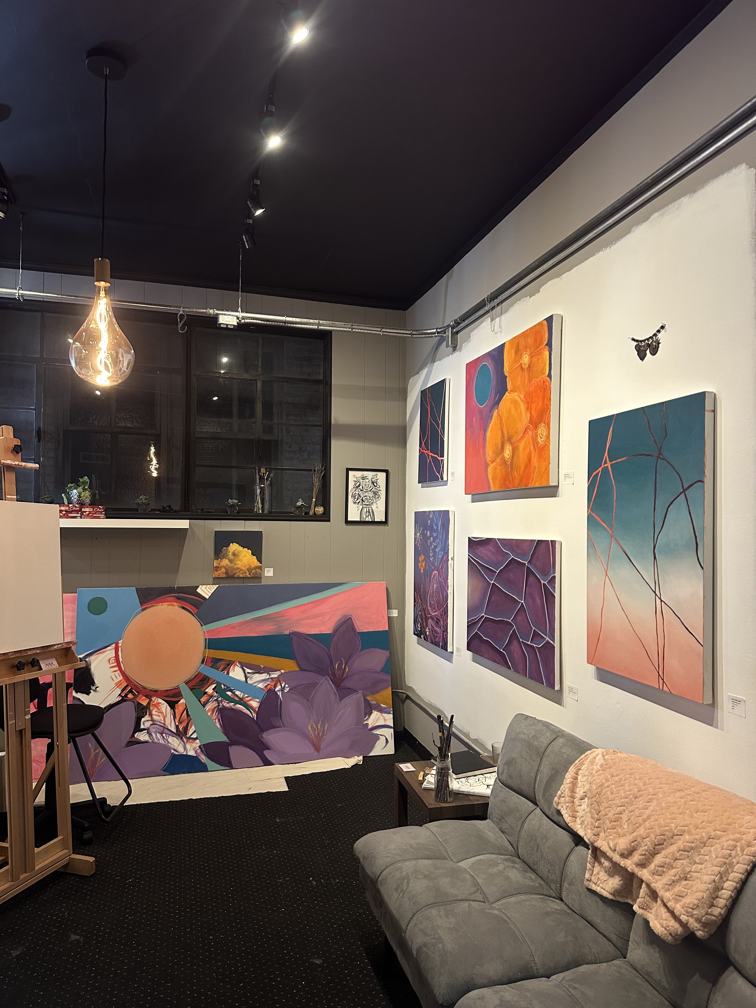 Solo show of Maria McDonald’s work made post grad. The work focuses on the contrast of past and present and how patterns in nature reiterate that. Feelings such as grief and connection are tied to those depictions.